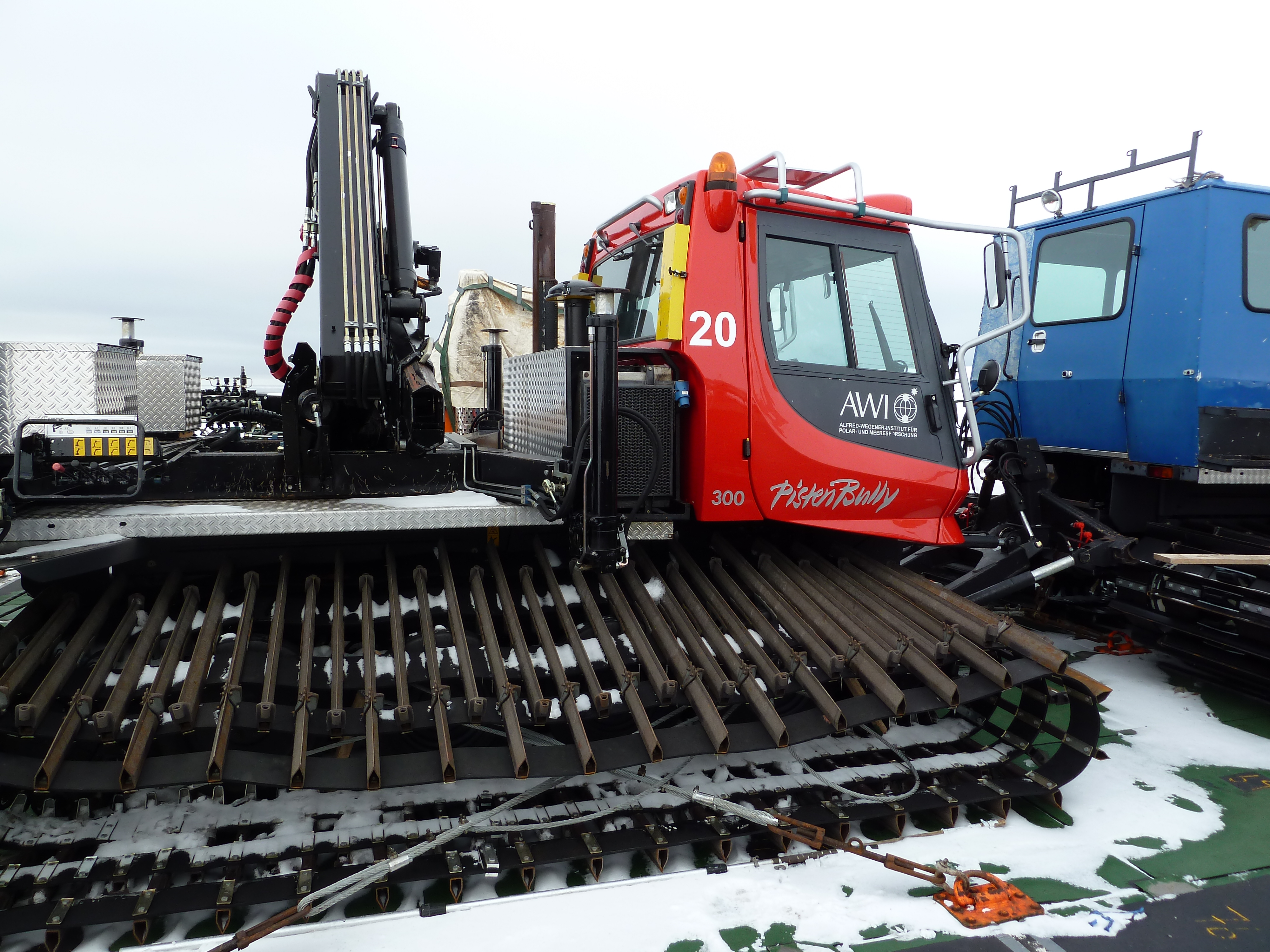 The first sched of the day is with the iStar Pine Island Glacier Tractor Traverse team. Sledge Victor. James Wake is the Traverse Leader and Field Assistant assigned to this very large project. The transport for this traverse is two ginormous Pisten Bullies which tow a living caboose and a large amount of science equipment.